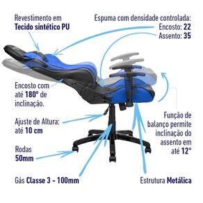 Informações Adicionais A nova linha de Cadeira Gamer Mymax, são as mais iradas do mercado, a MX5 possui design ergonômico e revestimento em tecido sintético. Projetada para proporcionar conforto mesmo após horas jogando. Esse conforto foi obtido através do uso de espuma injetada de alta densidade no encosto e assento, aliado a possibilidade de inclinar o encosto em até 180° e da função balanço.