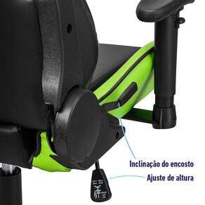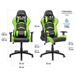 Características Marca: Mymax Nome produto: Cadeira Gamer MX5 Giratoria Preto/Verde Modelo: Cadeira Gamer MX5 Cor: Preto/Verde Revestimento: Estofamento em tecido sintético PU Estrutura: Metálica Superfície de Apoio: Espuma com densidade controlada - 35 Assento / 22 Encosto Peso Máximo Suportado: 150kg Ajuste Altura: Sim - 10cm Encosto Regulável: Sim - Permite inclinação de até 180° Função Balanço: Sim - Função de balanço permite inclinar o assento em até 12° Gás: Classe 3 - 100mm Diâmetro Pés: 70cm Rodas: 50mm Braços: Regulagem 2D (direita/esquerda e altura) Almofadas: Almofadas para apoio lombar e de pescoço. Ambas com logo bordado Parafusos: 14 Altura do chão até apoio de braço: 59 - 76cm Altura do chão até assento: 45 - 55cm Altura do encosto: 85cm Largura do assento: Interna 34cm / Externa 53cm Profundidade interna do assento: 53cm EAN: 7898554984081 Informativo de Garantia: 12 meses de garantia (9 meses de garantia contratual junto ao fabricante + 3 meses referentes à garantia legal, nos termos do artigo 26, II, do Código de Defesa do Consumidor)