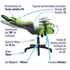 Informações Adicionais A nova linha de Cadeira Gamer Mymax, são as mais iradas do mercado, a MX5 possui design ergonômico e revestimento em tecido sintético. Projetada para proporcionar conforto mesmo após horas jogando. Esse conforto foi obtido através do uso de espuma injetada de alta densidade no encosto e assento, aliado a possibilidade de inclinar o encosto em até 180° e da função balanço.
