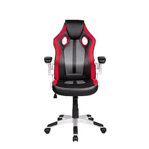 Assento com ajuste de altura, estofado e revestido em Couro Pu Preto com detalhes Vermelho e Cinza