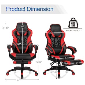 Mais confortável e relaxante A cadeira de jogos reclinável é preenchida com esponja de alta densidade e a superfície é coberta com couro PU de alta qualidade. O encosto oferece suporte multiponto e está equipado com um travesseiro de cintura e um travesseiro de cabeça livremente ajustáveis para se ajustar perfeitamente à sua coluna, o que ajuda a liberar a pressão lombar e proporcionar o máximo conforto. Ajuste à vontade A faixa de ajuste de altura do assento da cadeira de jogos ergonômica é de a , o que pode atender às suas necessidades diárias. A faixa de ajuste do encosto é de 90 graus a 155 graus, que pode ser inclinada para uma posição adequada para trabalhar, assistir TV ou descansar. A cadeira de jogo multifuncional pode melhorar sua experiência de jogo. Liberte seus pés As cadeiras de videogame são equipadas com pedais retráteis. Você pode puxar o apoio para os pés para relaxar os pés, melhorando ainda mais sua experiência ao sentar. A cadeira de e sports pode girar 360 horizontalmente e o rolo fornece movimento suave, o que é conveniente para seu movimento e comunicação. Construção estável e robusta Toda a cadeira de jogo adota uma estrutura de aço sólida como estrutura principal e é equipada com um suporte de base de metal pesado de 5 garras para garantir a estabilidade da cadeira de corrida, com uma carga de 149 kg. A haste de gás atualizada e os dispositivos mecânicos aumentaram muito a expectativa de vida da cadeira. Fácil de instalar Nossas cadeiras gamer estão equipadas com todo o hardware e ferramentas de montagem necessárias Marca: Não Informado
