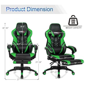 Ajuste à vontade A faixa de ajuste de altura do assento da cadeira de jogos ergonômica é de 43 a , o que pode atender às suas necessidades diárias. A faixa de ajuste do encosto é de 90 graus a 155 graus, que pode ser inclinada para uma posição adequada para trabalhar, assistir TV ou descansar. A cadeira de jogo multifuncional pode melhorar sua experiência de jogo.