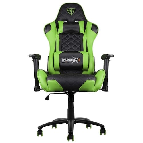 A TGC12 ThunderX3 é uma cadeira gamer com revestimento de couro coberta com costuras de fibra de carbono. Seu estofado é em forma de diamantes construida com firmeza para proporcionar conforto enquanto você desfruta do prazer de jogar seus games favoritos. Da sala de estar para a sala de jogos, você pode planejar a próxima dominação do mundo do conforto de sua cadeira gamer. - Braços 2D (2 Direções) - Encosto Reclinável de 90~180 - Balanço de 3~18 - Almofada Para Coluna e Nuca - Ajuste de Altura - Assento Giratório - Roda de 50mm - Suporta ATé 150 Kg - Conforto o Dia Todo: Um assento firme com um pequeno apoio para cabeça e almofada para as costas oferecem um conforto prolongado. - Descanso Poderoso: Para impulsionar sua memória, suas habilidades cognitivas, criatividade e energia, essa cadeira conta com o encosto traseiro reclinável em aTé 180. Além de desfrutar de horas de jogabilidade, você ainda pode descansar para voltar a jogar com poder renovado. - Relaxe: Descanse seu antebraço no apoio ajustável bi-direcional da cadeira gamer TGC12. Perfeito para posicionar os cotovelos durante horas de jogabilidade. - Ajuste de Altura do Assento: Ajuste pneumático da altura do assento com um giro de 360. Perfeito para jogadores entre 160~185cm de altura. - Feito Para Durar: A combinação de qualidade, materiais sólidos e mecanismos fazem as Cadeiras Gamer ThunderX3 a melhor escolha. O estofado refinado de couro sinTético em formato de diamantes é suave e adciona um toque de elegância à cadeira gamer TGC12. - Base Resistente: Uma base resistente forte feito de aço garante a sua cadeira estabilidade e durabilidade. - Movimente-se: Com uma roda de 50mm de diâmetro construida em nylon garante liberdade para movimentar-se para todos os lados. - Resistência: Estrutura metálica resistente que garante que a cadeira não se deforme ou quebre. Cód.