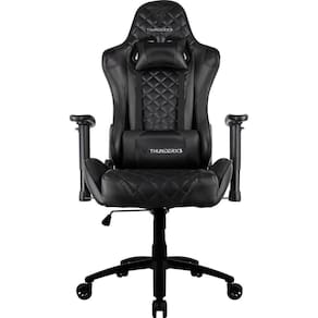 Cadeira Gamer Thunderx3 Tgc12 Preta A Cadeira Gamer ThunderX3 TGC12 é um modelo que possui cobertura em poliuretano com detalhes em fibra de carbono. O estofamento em forma de diamante na cadeira com acolchoamento firme nas áreas de contato garantem uma experiência confortável para quem passa longas horas sentado. Um assento firme com apoio para cabeça e almofada para as costas unido a um encosto reclinável em até 135 permitem conforto durante todo o dia, seja na hora de jogar ou enquanto descansa para recuperar suas energias. Ainda pensando no descanso a cadeira foi projetada com balanço que ao mesmo tempo que relaxa também promove o fluxo sanguíneo.