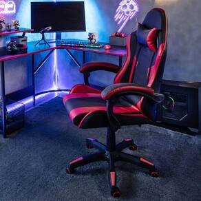 Resumo Tecnico: Modelo: Cadeira Gamer Neo Cores: Vermelha e Preta Marca: Just Home Collection Material: Revestimento sintetico Ajuste de altura: Sim, a gas Encosto: Reclinavel Bracos: Fixos Base: Com rodizios Design: Ergonomico, inspirado em assentos automotivos Marca: Não Informado