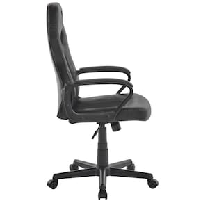 Design ergonômico com apoio para os braços acolchoado. Revestimento em couro sintético -PU- para durabilidade e conforto. Base resistente com rodas de nylon para maior estabilidade.