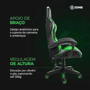 A Cadeira Gamer CGR-01-GR DA X-Zone possui espuma injetada de alta densidade e design ergonômico. Superconfortável, conta com almofadas para a lombar e pescoço e um apoio estofado para o braço. Suas rodas de alta resistência garantem fácil movimentação em um giro de 360º. Seu encosto reclinável pode ser ajustado até 140º, atendendo às suas necessidades e o estofamento de couro sintético pu oferece maior durabilidade e melhor acabamento ao produto. E não acabou! A altura de assento da cadeira é ajustável com molas a gás para facilitar ao elevar e abaixar a cadeira, economizando tempo e energia, além de suportar o peso máximo de 135kg.