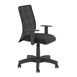 Assento em tecido Space e encostos em tela super resistente preta. Base e braço pretos.