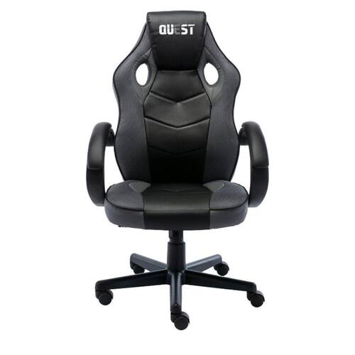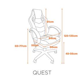 A cadeira Gamer que você precisa! A Gamer Quest é toda em couro ecológico com sua base em Nylon. Ela possui o sistema relaxa e seus braços também são revestidos em couro ecológico, o que torna ela ainda mais confortável. Acabamento da Estrutura: Não se Aplica Altura do assento até o chão: 56 cm Ambiente Principal: Quarto Braço com Ajuste de Altura: Não Complexidade da Montagem: Média: pode ser montado por mais de uma pessoa e/ou necessite de maior conhecimento para montagem Cor: Preto/Cinza Cor da Base: Preto Cor do Produto: Preto/Cinza Empilhável: Não Encosto Reclinável: Sim Escala de Brilho: Fosco Estrutura do Assento: Madeira Estrutura do Encosto: Madeira Giratória: Sim Itens Inclusos: 1 Cadeira, Kit Ferragens e Manual de Instruções Linha ou Coleção: Quest Manual de Montagem e Instalação: https://cdn2.madeiramadeira.com.br/atributo/fratini/1112138-cadeira-gamer-quest-ref-283.pdf Material da Base: Aço/Nylon Necessita Montagem: Sim Origem do Produto: Importado Peso: 15,69 kg Possui Apoio para Braços: Sim Possui LED: Não Possui Rodízio: Sim Recomendações de Uso, Manutenção e Limpeza: Pano úmido Revestimento do Assento: Couro Ecológico Revestimento do Encosto: Poliuretano Sistema de Montagem: Encosto, Assento, Par de Braços, Flange (Mecanismo)Pistão, Capa Telescópica, Rodizio (Estrela + Rodinhas) Kit de Parafusos, Chave de Parafusos. Suporta Até (kg): 120 kg Tipo de Assento: Regulável Tipo de Encosto: Regulável Tipo de Madeira Maciça: Pinus
