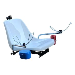Descrição do produto: Cadeira giratória para barco com assento anatômico em polipropileno azul, proporcionando maior conforto e segurança para sua pescaria. Base com encaixe ajustável por molas, com abertura de 29cm até 50 cm. Apresenta acabamento de qualidade, leve, compacta e confortável. Super prática.