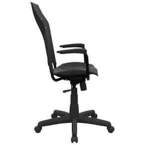 A cadeira giratória é constituída de assento e encosto; plataforma, coluna e base com rodízio.