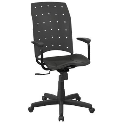 Cadeira giratória plaxmetal presidente ergoplax - 33682.1.13 Cor: preto A cadeira giratória é constituída de assento e encosto; plataforma, coluna e base com rodízio. A estrutura de sustentação do assento encosto é fabricada em tubos de aço 1010 / 1020 com ø 22.20 mm e 1.50mm de espessura de parede, fosfatada e pintada com tinta epóxi pó. Os tubos são curvados e furados para acoplarem-se ao assento e encosto unindo-se com o mecanismo onde serão fixados por 4 parafusos m6x35mm fenda phillips cabeça panela. O conjunto é então acoplando ao pistão a gás e esse acoplado à base de cinco pernas com cinco rodízios. O assento é produzido em polipropileno copolímero injetado e moldado anatomicamente com acabamento texturizado, com dimensões de 465 mm de largura, 470 mm de profundidade 5 mm de espessura de parede com cantos arredondados, unidos à estrutura por meio de 4 quatro porcas aparafusadas bucha americana ¼X13mm ; e 4 quatro parafusos sextavados flangeados ¼X1.1/2. Sobre o assento existe um estofamento com alma plástica que é fixado ao mesmo por meio de parafusos para plástico. Altura do assento é regulável de 410 à 520 mm. O encosto é fabricado em polipropileno copolímero injetado e moldado anatomicamente com acabamento texturizado, com dimensões de 460mm de largura por 610mm de altura, com espessura de parede de 5mm e cantos arredondados, unidos a estrutura por dupla cavidade na parte posterior do encosto que se encaixa a estrutura metálica, travada por dois pinos fixadores plásticos injetados em polipropileno copolímero, na cor do encosto, dispensando a presença de rebites ou parafusos. O encosto possui aberturas para ventilação. O mecanismo é feito em chapa de aço 1010/1020 de espessura 2.65mm, fosfatada pintada com tinta epóxi pó. Dotada de alavanca plástica para acionamento da coluna a gás para regulagem de altura do assento, além de travamento e liberação do reclinamento simultâneo de assento e encosto. A tensão desse reclinamento é ajustável por meio de uma manopla que quando girada aumenta ou diminui a pressão sobre a mola que regula o movimento. A base penta pé, é fabricada em chapa 1010/1020 de espessura 1,20mm, fosfatada pintada com tinta epóxi pó, coberta com carenagem injetada em polipropileno com acabamento texturizado. Coluna modelo gás com curso de 110 mm e comprimento mínimo de 295 mm e máximo de 405 mm, coberta com carenagem injetada em polipropileno com acabamento texturizado. O apoio de braço é formado pelo prolongamento da estrutura de sustentação do assento e encosto revestido com uma peça em polipropileno copolímero injetado com acabamento texturizado. Suas dimensões são 53 mm de largura por 240 mm de comprimento e são fixados por dois parafusos para plástico. Dimensões do produto Altura: 99 cm Com pistão fechado e 1,10 m com pistão aberto. Largura assento: 46 cm Profundidade assento: 42 cm Ean: 7899832027964