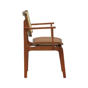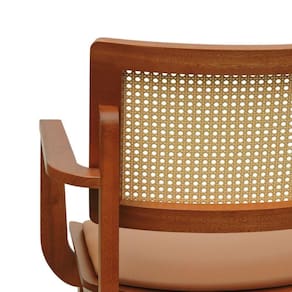 - Materiais: Estrutura em madeira de eucalipto, encosto com telinha sextavada aplicada e assento anatômico envernizado