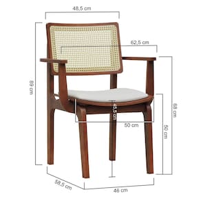 As Cadeiras Gus são produzidas em madeira de eucalipto, com assento anatômico e encosto em telinha sextavada. Altíssima comodidade, uma cadeira que irá transformar seu ambiente! Produto simples e atual. As Cadeiras Gus são uma ótima opção para compor sua sala de Jantar ou até mesmo cozinha. Acabamento: Verniz Acabamento da Estrutura: Verniz Almofada do assento: Fixa Altura do assento até o chão: 45,5 cm Ambiente Principal: Sala de Jantar Apoio para Braços Estofado: Não Cor: Amêndoa/Bege Cor do Produto: Amêndoa/Bege Cor dos Pés: Marrom Dimensões do assento: 49,5 x 41 Dobrável: Não Enchimento do Assento: Espuma D-23 Escala de Brilho: Fosco Estrutura do Assento: Anatômico Multilaminado Estrutura do Encosto: Madeira Maciça Giratória: Não Itens Inclusos: 1 Cadeira Linha ou Coleção: Gus Manual de Montagem e Instalação: https://cdn2.madeiramadeira.com.br/prd/decorise-comercio-de-moveis/2314944-Montado.pdf Material da Base: Madeira Maciça Material dos Pés: Madeira Maciça Material Principal: Madeira Maciça Necessita Montagem: Não Origem do Produto: Nacional Peso: 11 kg Possui Apoio para Braços: Sim Possui Apoio Para os Pés: Não Possui Rodízio: Não Quantidade de Itens: 1 Recomendações de Uso, Manutenção e Limpeza: Na limpeza não utilizar produtos químicos e abrasivos, usar apenas um pano umedecido para garantir a maior durabilidade do móvel Revestimento do Assento: Sintético Revestimento do Encosto: Rattan Telinha Sextavada Tamanho do Produto: 89 x 62,5 x 58,5 Tipo de Assento: Fixo Tipo de Encosto: Fixo Tipo de Madeira Maciça: Eucalipto