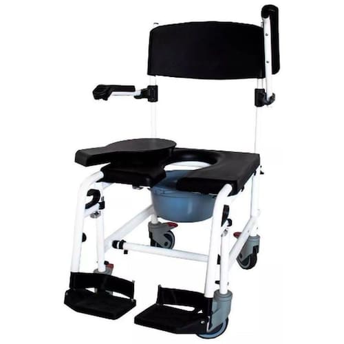 - Cadeira de Banho Supersoft; - Confeccionada em alumínio; - Pintura eletrostática; - Freio nas 4 rodas; - Contém dispositivo antiderrapante nas rodas; - Com recipiente coletor; - Capacidade para até 100kg; - Assento e Encosto almofadado; - Com rodas 5 castor em plástico; - Largura do assento 43cm; - Altura do assento 53cm; - Profundidade do assento 45cm; - Largura total 55cm; - Comprimento total 75cm; - Altura da cadeira 93cm;