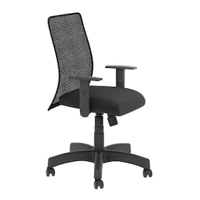 Assento em tecido Space e encostos em tela super resistente preta. Base e braço pretos.