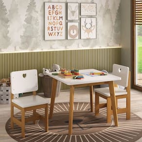 Estruturas em madeira maciça de pinus com acabamento em verniz, pintura que preserva a cor natural do produto , as partes produzidas em MDF são laqueadas com brilho fosco Acabamento: Verniz Acabamento da Estrutura: Verniz Almofada do assento: Fixa Altura do assento até o chão: 29 cm Altura dos Pés: 29 cm Ambiente Principal: Quarto Infantil Apoio para Braços Estofado: Não Complexidade da Montagem: Baixa: pode ser montado por uma pessoa sozinha Cor: Branco/Mel Cor do Produto: Branco/Mel Desmontável: Não Dimensões do assento: 29,5x29,5x1,5 cm Dobrável: Não Escala de Brilho: Fosco Estrutura do Assento: MDF Estrutura do Encosto: MDF Giratória: Não Itens Inclusos: NÃO Manual de Montagem e Instalação: https://product-hub-prd.madeiramadeira.com.br/911992/documents/7edca229-e2f0-4a58-b133-3c35d7ddb54320357195744171802317338.pdf Material dos Pés: Madeira Material Principal: MDF Necessita Montagem: Sim Origem do Produto: Nacional Peso: 3,1 kg Possui Apoio para Braços: Não Possui Encosto: Sim Possui Rodízio: Não Quantidade de Pés: 04 Recomendações de Uso, Manutenção e Limpeza: Limpar com pano seco para retirar o pó. Não aplicar produtos abrasivos Sistema de Montagem: Parafusos, cavilhas, chave allen Tipo de Assento: Fixo Tipo de Encosto: Fixo Tipo de Madeira Maciça: Pinus Marca: Empório Paraíso