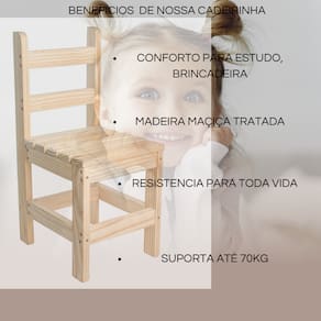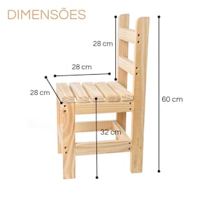 Cadeira Infantil De Madeira Super Resistente Até 80 Kg. Feita de madeira de PINUS TRATADO, garantindo durabilidade e segurança. Assento ripado para máximo conforto. Acabamento natural, sem pintura, ressaltando a beleza da madeira. Medidas: 60x32x28cm (altura x profundidade x largura). Altura do assento até o chão: 32cm. Faça parte desta jornada de crescimento e diversão ao lado dos seus filhos. Não perca tempo e garanta já o seu Banquinho Kids - um tesouro que acompanhará sua família por muitos e muitos anos.