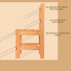 Seu design ripado e acabamento natural trazem um toque rústico e charmoso para qualquer ambiente. As medidas precisas de 60x32x28cm (altura x profundidade x largura) são perfeitamente adaptadas para os nossos pequenos exploradores, proporcionando conforto e estabilidade incomparáveis.