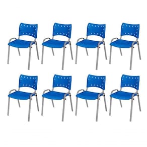KIT 8 CADEIRA ISO EMPILHAVEL BASE CINZA ESCRITORIO, , - AZUL
