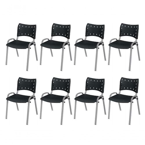 KIT 8 CADEIRA ISO EMPILHAVEL BASE CINZA ESCRITORIO, , - PRETO