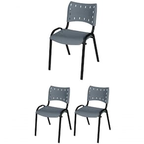 KIT 3 CADEIRA ISO EMPILHAVEL BASE PRETO ESCRITORIO, , - CINZA
