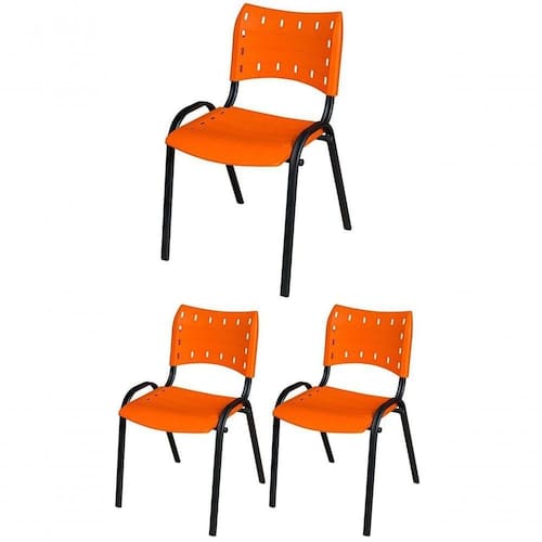 KIT 3 CADEIRA ISO EMPILHAVEL BASE PRETO ESCRITORIO, , - LARANJA