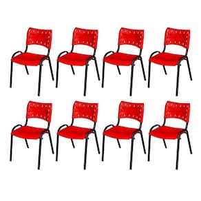 KIT 8 CADEIRA ISO EMPILHAVEL BASE PRETO ESCRITORIO, , - VERMELHO