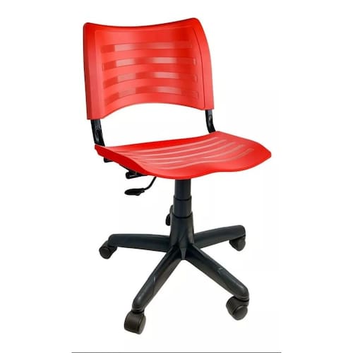 Cadeira iso giratoria desmontável com regulagem de altura - base de ferro - apoio de pé e rodízio vermelho Cadeira iso - assento e encosto em polipropileno - regulagem de altura a gás - estrutura em aço com acabamento em pp - pintura eletrostática - aro para apoio dos pés - base de ferro com rodizios Medidas do produto do montado do chão ao assento: Mínima: 54 cm Máxima: 63 cm Marca: Sintonia Flex