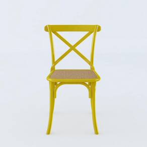 Altura: 90cm Largura: 44cm Profundidade: 44cm Peso: 5,1kgCadeira Jantar Cross Katrina Amarelo Assento Corano Bege AÃo