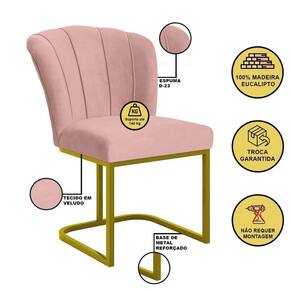Desenho Do Tecido: Veludo | Estrutura: Madeira | Marca: Balaqui Decor | Quantidade de Caixas Por Embalagem: 1 | Tipo de Produto: Cadeira de Jantar | Material: Madeira | Material De Estofamento: Veludo | Tipo de Tecido: Veludo | Tipo de Garantia: Garantia do Fabricante | Montagem: Montagem Completa | Tipo de Cadeira: Cadeiras de Sala de Jantar | Móvel Dobrável: Não | Altura do Encosto da Cadeira: Encosto médio | Duração da Garantia: 3 meses | Coleção de Antiguidade: Não | Cor Da Estrutura Da Cadeira: Dourado | Material dos Pés: Metal | Altura: 81 cm | Largura: 69 cm | Profundidade: 49 cm | Dimensões do produto (A x L x C): 81 x 69 x 49 Cor: Rosa