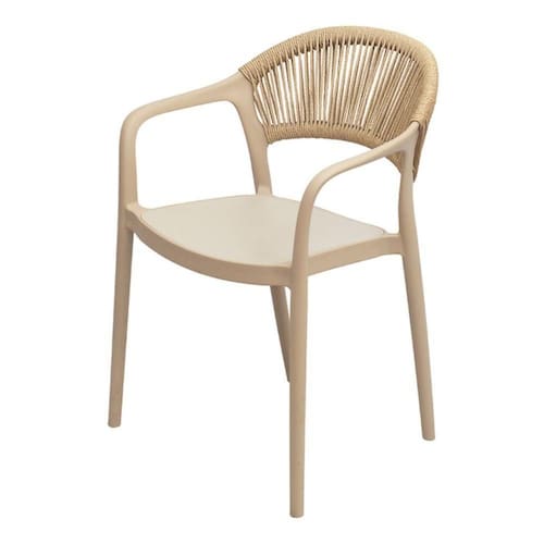 Conta com sua estrutura completa em polipropileno com tratamento UV, oque á torna uma peça que possa ser usada também em áreas externas, e encosto com barbantes de ratan sintético, levando mais conforto para a peça!