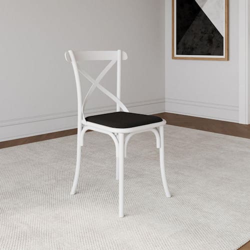 Cadeira Katrina Assento Corano Preto Aço Branco