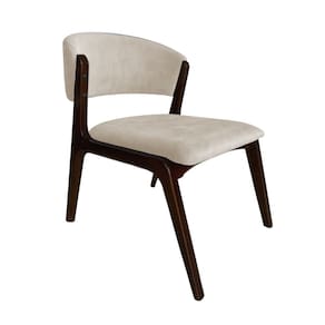 Cadeira Kethellen Premium Madeira Maciça Castanho Veludo Bege