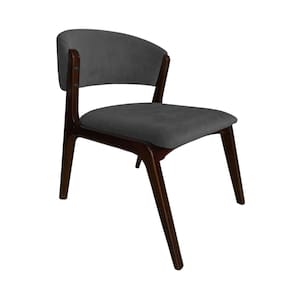CARACTERÍSTICAS Tipo: Cadeira Modelo: Kethellen Tecido: Veludo Cor do Tecido: Grafite Cor da Base: Castanho