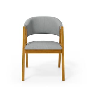 Apresentamos a você a cadeira Leticia, ela é estofada com espuma D-23 no assento, espuma D-23 no encosto e seus pés são feitos de madeiras maciças de eucalipto na cor castanho.