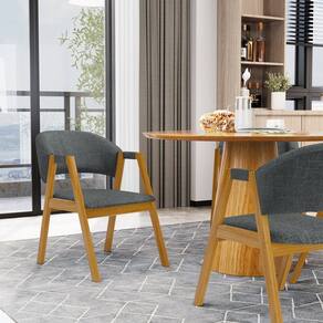 Apresentamos a você a cadeira Leticia, ela é estofada com espuma D-23 no assento, espuma D-23 no encosto e seus pés são feitos de madeiras maciças de eucalipto na cor castanho.
