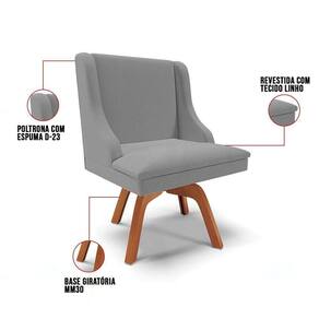 A cadeira Liz proporciona estilo e elegância ao ambiente, com seu formato incrível e design moderno, estrutura ecologicamente correta de madeira de eucalipto e pinus, oferece durabilidade e qualidade ao móvel, seu estofamento é com espuma de densidade D-23, revestido em tecido em Linho no tom Grafite, que oferece muito conforto e resistência ao sentar, com aquela sensação de maciez e bem-estar. Aproveite melhor seu espaço. Garanta já a sua!