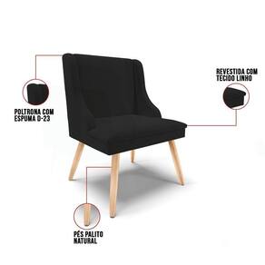 A cadeira Liz oferece maior aconchego na decoração e devido ao assento da cadeira ter uma espuma super macia, transmite a sensação de tranquilidade e no clima de frio aquece o ambiente. Com estrutura ecologicamente correta de madeira de eucalipto e pinus, oferece durabilidade e qualidade ao móvel, seu estofamento é com espuma de densidade D-23, revestido em tecido em Linho no tom Preto, que oferece muito conforto e resistência ao sentar, com aquela sensação de maciez e bem-estar. Sua cozinha vai ficar incrível com a cadeira de jantar Liz.