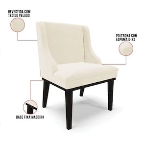 Cadeira Liz Veludo Bege Base Fixa Madeira Preto - D`Ross