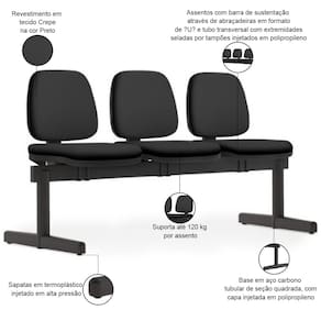 Proporcione um ambiente de espera agradável e profissional com essa longarina 3 lugares, pois é a solução perfeita para otimizar seus espaços e oferecer um design elegante e atemporal. Fabricada com materiais resistentes e duráveis, essa longarina é ideal para compor recepções, salas de espera e postos de trabalho operativos, já que garante longa vida útil e um excelente custo-benefício, além de oferecer o máximo conforto e bem-estar para seus clientes com o assento e encosto estofados.