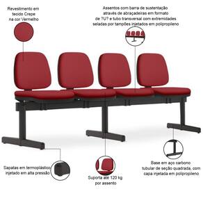 Proporcione um ambiente de espera agradável e profissional com essa longarina 4 lugares, pois é a solução perfeita para otimizar seus espaços e oferecer um design elegante e atemporal. Fabricada com materiais resistentes e duráveis, essa longarina é ideal para compor recepções, salas de espera e postos de trabalho operativos, já que garante longa vida útil e um excelente custo-benefício, além de oferecer o máximo conforto e bem-estar para seus clientes com o assento e encosto estofados.