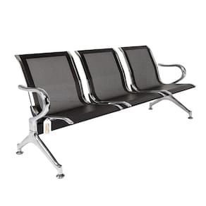 Cadeira tipo longarina com assentos estofados e base fixa;