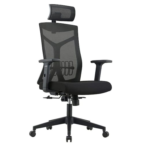 Possui regulagem de altura do assento, regulagem de altura dos braços, assento com espuma injetada, regulagem da inclinação do encosto, travamento do encosto em qualquer posição, apoio de lombar, apoio de cabeça regulável, e além de tudo isso, é ergonômica!