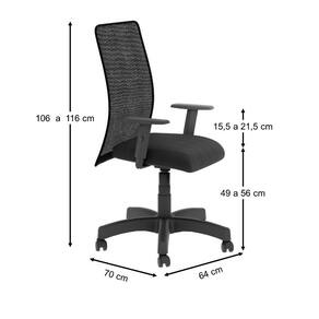 Base giratória com regulagem de altura com sistema a gás. Encosto de Tela 100% Poliéster extra forte com resina anti-encolhimento. Assento com Espuma Injetada de alta qualidade. Tapeçada com tecido J. Serrano.