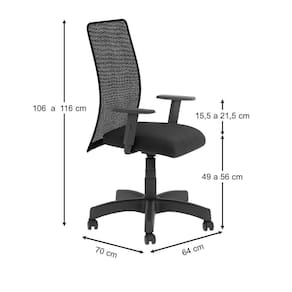 Base giratória com regulagem de altura com sistema a gás. Encosto de Tela 100% Poliéster extra forte com resina anti-encolhimento. Assento com Espuma Injetada de alta qualidade. Tapeçada com tecido J. Serrano.