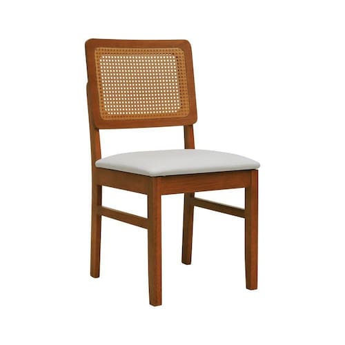 - Materiais: Estrutura em madeira de eucalipto maciço, assento estofado espuma D26 e encosto anatômico com telinha sextavada aplicada.