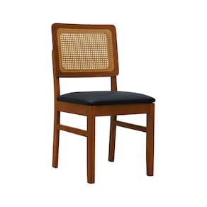 Cadeira Madeira Maciça Lyon Encosto Telinha Amêndoa Assento Estofado Corano Preto -