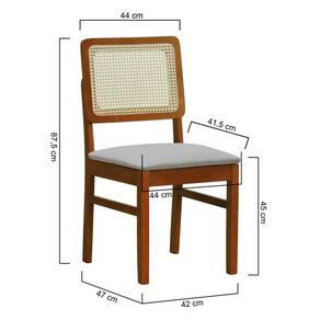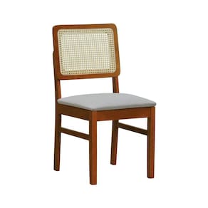 Cadeira Madeira Maciça Lyon Encosto Telinha Natural - Amêndoa Assento Estofado Linho Bege Mescla Impermeável -