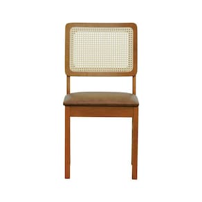 Cadeira Madeira Maciça Lyon Encosto Telinha Natural - Amêndoa Assento Estofado Corano Marrom Mescla -